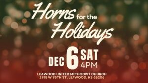 Save the dates! Our Horns for the Holidays concert is scheduled for Saturday, December 6 2025 at 4:00 p.m. at Leawood United Methodist Church. We invite you to join